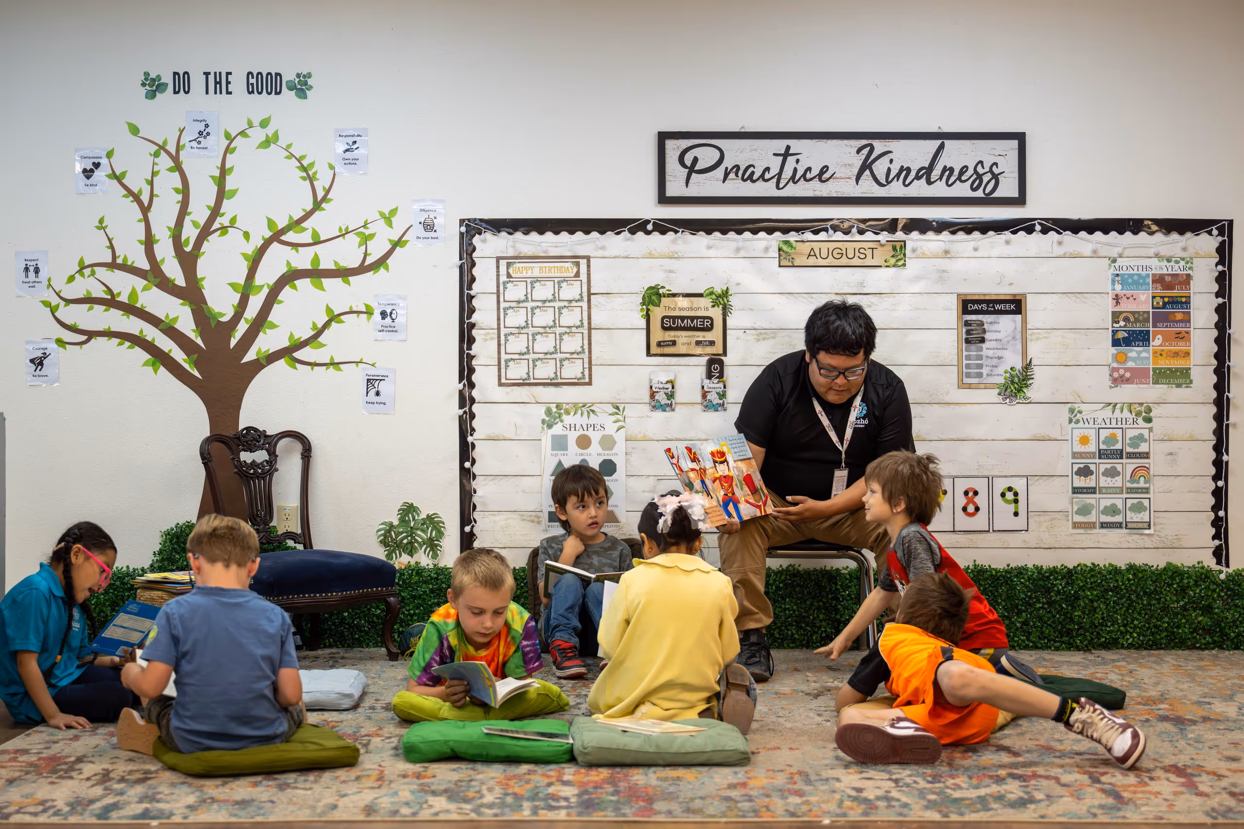 - Virtue Development woven into daily life, cultivating character through values like compassion, diligence, courage, and integrity.
